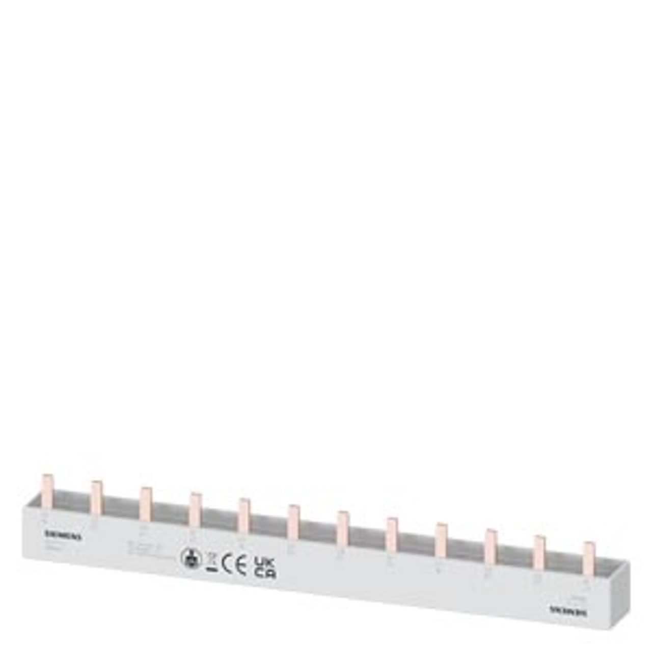 Pin busbar touch-safe, 16 mm2 4-phase, 214 mm long can be cut, with end caps
