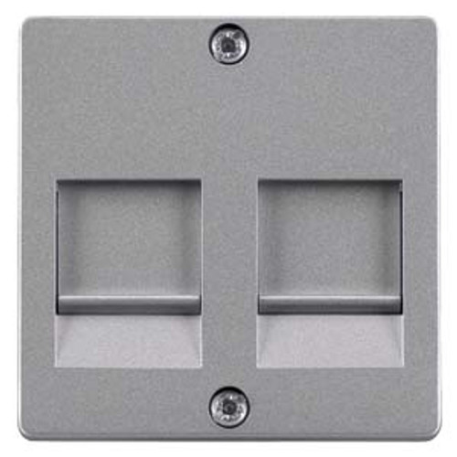 DELTA i-system aluminum-metallic Cover plate with shutter for support plates Modular jack connector